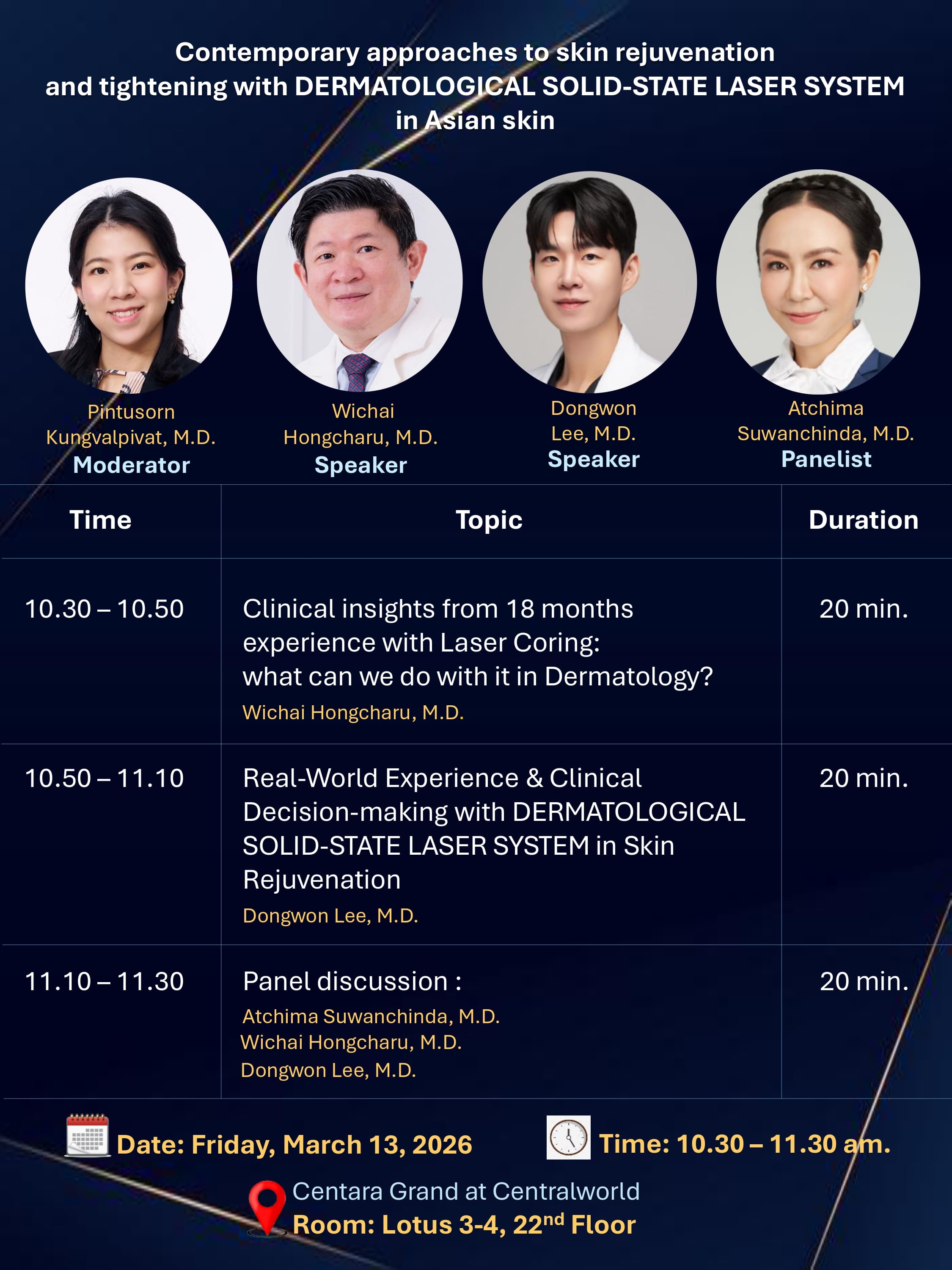 [13 March 2026 : 10.30-11.30] Contemporary approaches to skin rejuvenation and tightening with DERMATOLOGILAL SOLID-STATE LASER SYSTEM in Asian skin